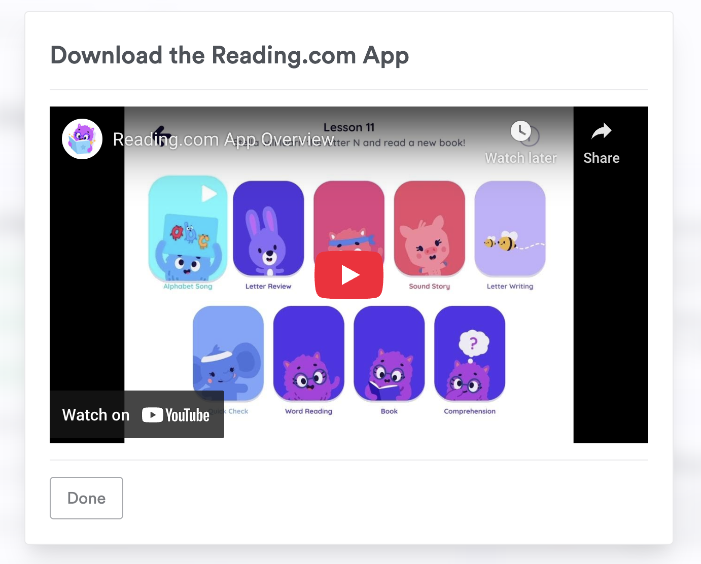 Note: Reading.com lessons are available only through the app, not the web browser.