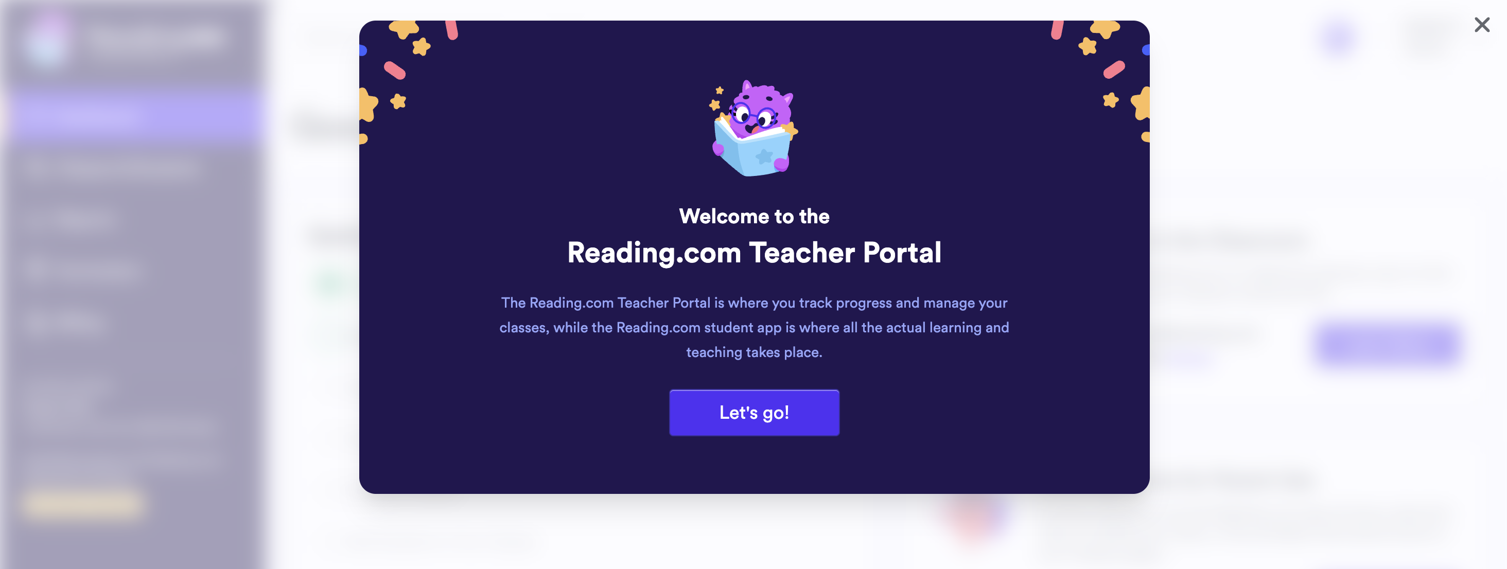 When you first log in, you’ll see a quick welcome message introducing you to two important parts of Reading.com: