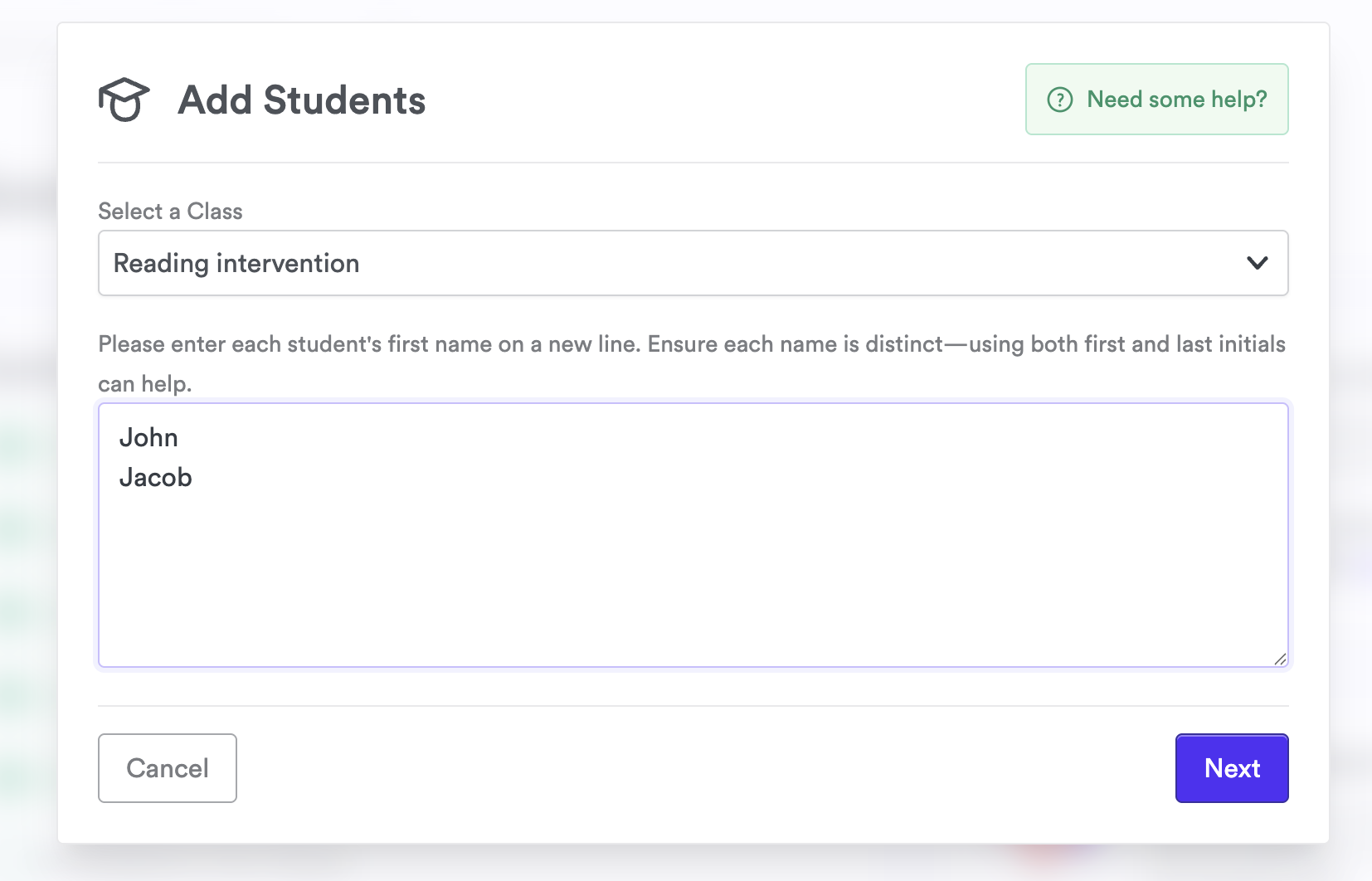Add each student's first name (and last initial if needed) to create their profile.