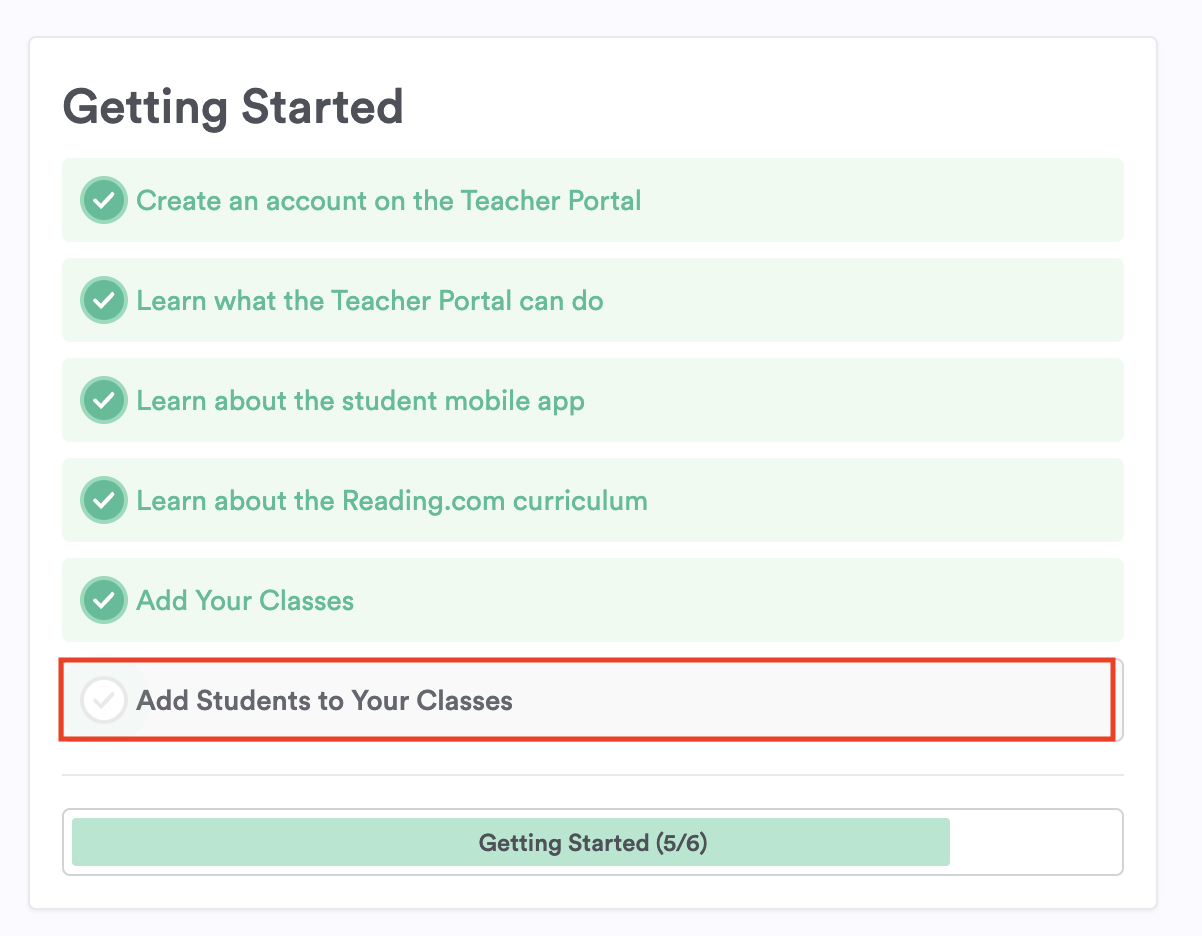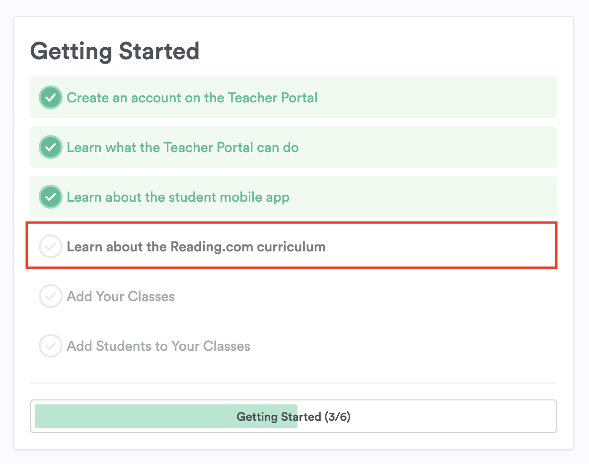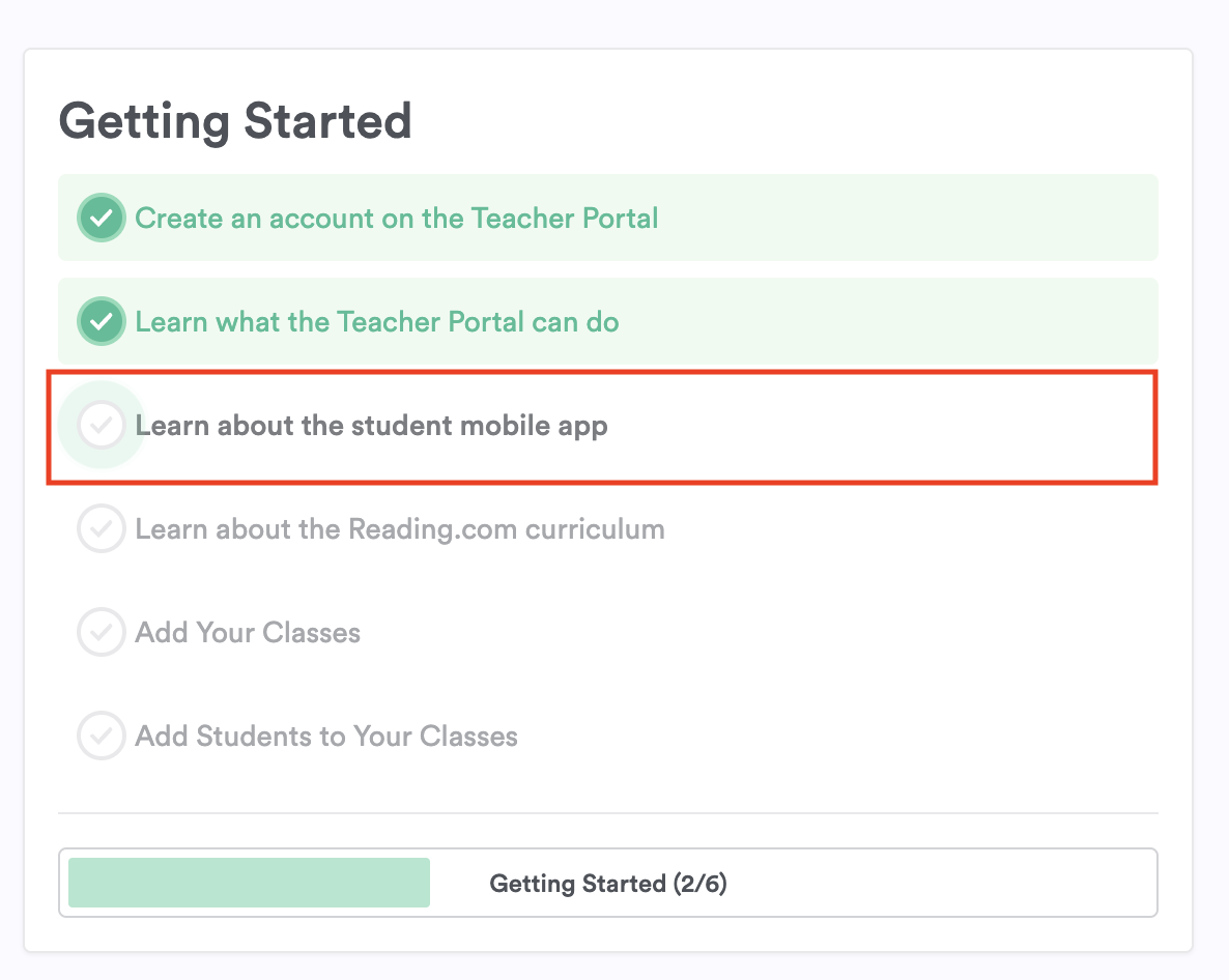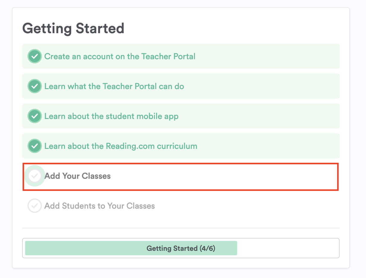 Getting started is quick and easy! Your Teacher Portal will guide you with a simple checklist.