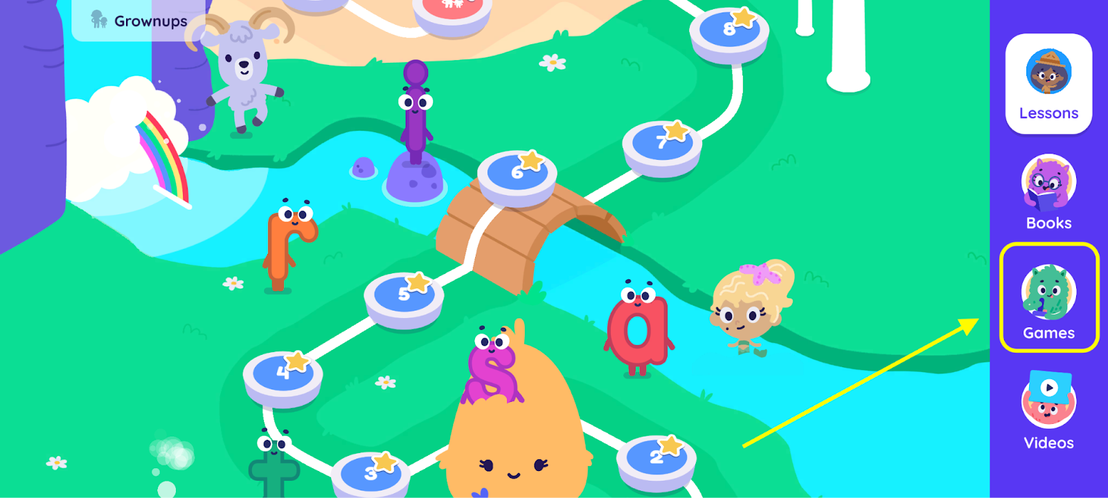 To locate the games and activities, simply tap on the "Games" section on the right side of the map.