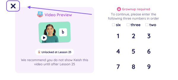 When the download is finished, a grown-up code prompt may appear to preview the sound story. If you do not want to watch the video preview right now, you can simply ignore this prompt and exit by tapping the 'X' in the upper left corner.