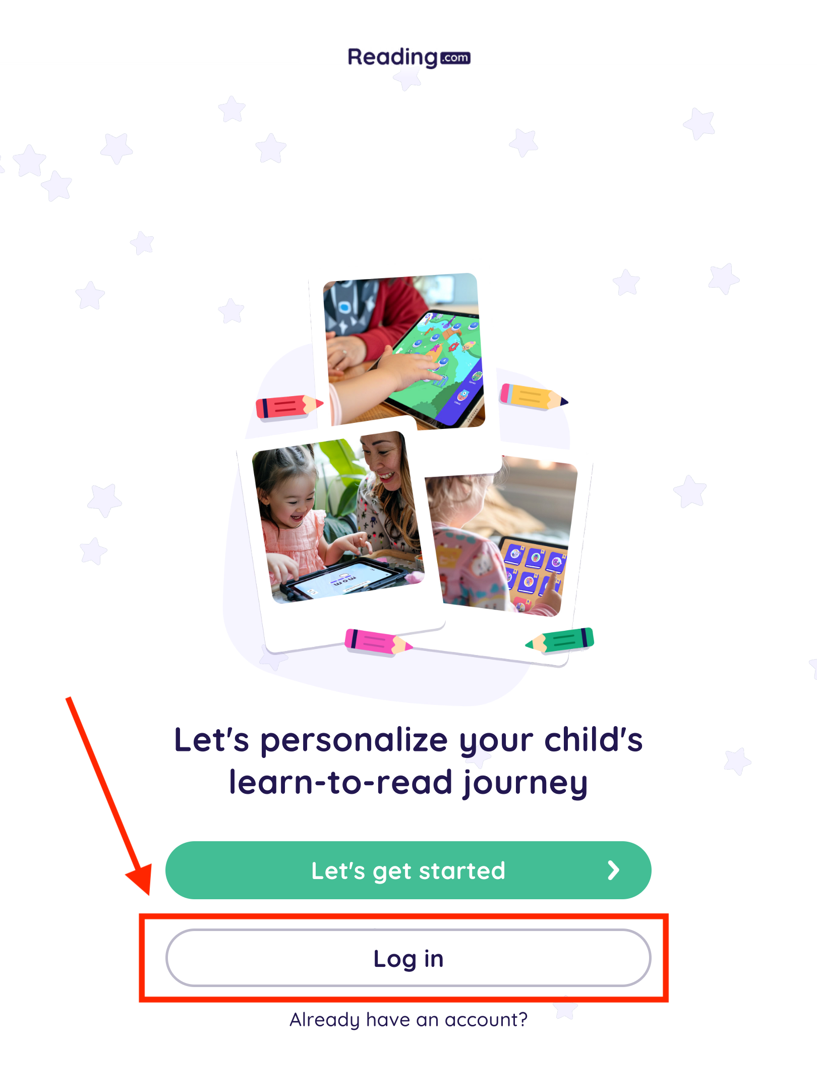 After downloading, open the Reading.com app. On the initial screen, you will have two options. Tap the 'Log in' option above "Already have an account?". Please note that it is important to be connected to the internet.